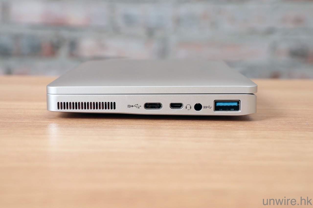 ▲雖然機仔細細,但 GPD Pocket 的端子仍然十分齊全,而且全部集中在機身右側,分別有:USB 3.0 x 1、3.5mm 耳機插孔、Micro HDMI 輸出 x 1 及 USB-C / 電源火牛插槽。