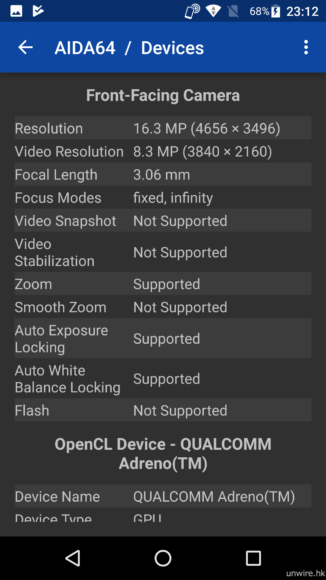 ▲前置鏡頭為 1630 萬像素,主鏡頭為 2260 萬像素。