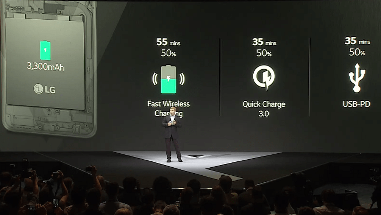 若果再看 V30 其他硬件規格,處理器為 Snapdragon S835,至於記憶體則是 4GB,儲存容量方面為 64GB,至於 V30+ 版本則是 128GB,兩個型號均可透過 microSD 卡額外擴充最多 2TB。續航力一直是現時大家最關注,V30 將配備 3,300mAh 容量電池,並支援 QC 3.0、無線充電和 USB-PD 技術,利用 QC3.0 和 USB-PD 均只需 35 分鐘即可充電 50%,若果用無線充電則需 55 分鐘。為了讓 V30 可應付各種使用環境,擁有 IP68 防水防塵規格,機身內部的 H-Beam 支架更可減少機身在碰撞時損壞,並通過 MIL-STD 801G 軍規測試。