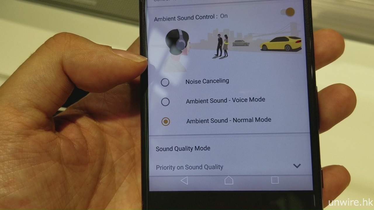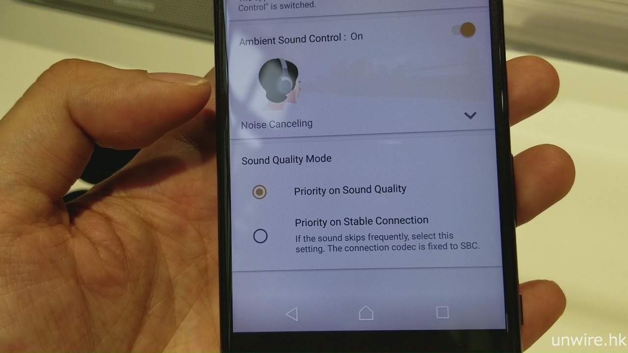 ▲ 配合專屬 App《Sony | Headphones Connect》,可以選擇開啟消噪功能,而接收外來環境聲的「環境音效」模式,亦會提供「語音」及「普通」兩種選擇。