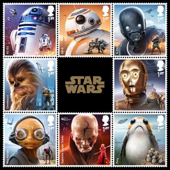 星球大戰的最新電影《星球大戰:最後的絕地武士》將會在2017年12月15日上映,英國都要發行星戰郵票贈慶。今次的《星球大戰》郵票系列,由英國皇家郵政局發行,當然是真正郵票可用作郵寄用途。郵票設計者與上一次星戰郵票一樣,都是由英國藝術家Malcolm Tween負責設計。