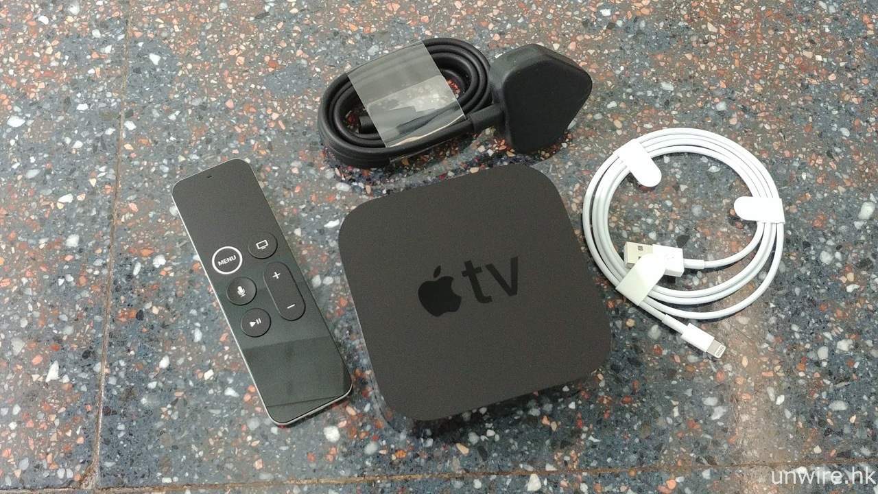 ▲ 包裝盒內一樣包括 Apple TV 4K 主機、遙控器、電源線及遙控器 Lightning 充電線。