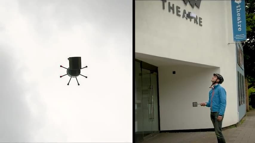 不少機構都在測試利用無人機送貨或空投物品,最近專門研發創新科技的 Cambridge Consultants 就展示了他們最新的概念技術 DelivAir,透過手機 App 和無人機即時接收和發送顧客訂購的物品,並直接將包裹交到客人手上。