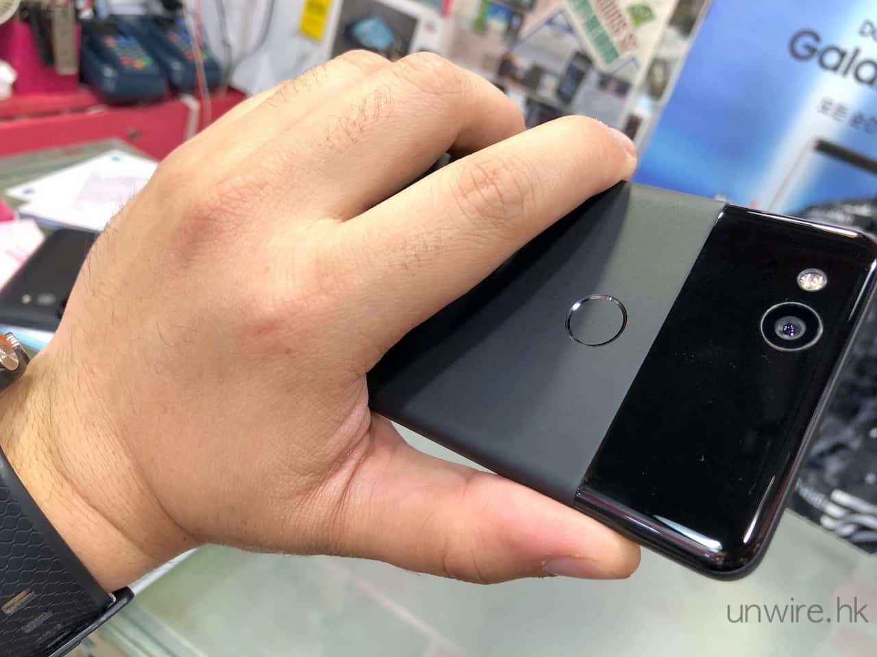 率先抵港的 Pixel 2 屬於細機設計,只是採用了 5 吋 1080p 熒幕設計,加上機背邊位為微弧形設計,所以單手掌握、操控甚至打字都完全無問題,唯一是熒幕邊位有少許利,如果握機握得太緊的話會有少許界手,整體來說還好,但不算十分舒服。
