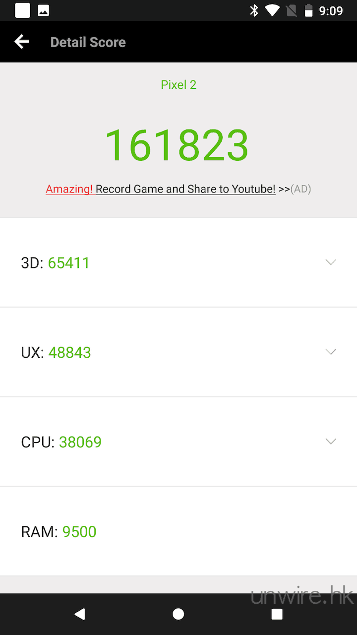 ▲以安兔兔評測測試效能,獲得 161,823 分,與去年推出的 iPhone 7 Plus 或今年推出的 Samsung Galaxy S8+ 或 Sony Xperia XZ Premium 相若,不過不失吧。