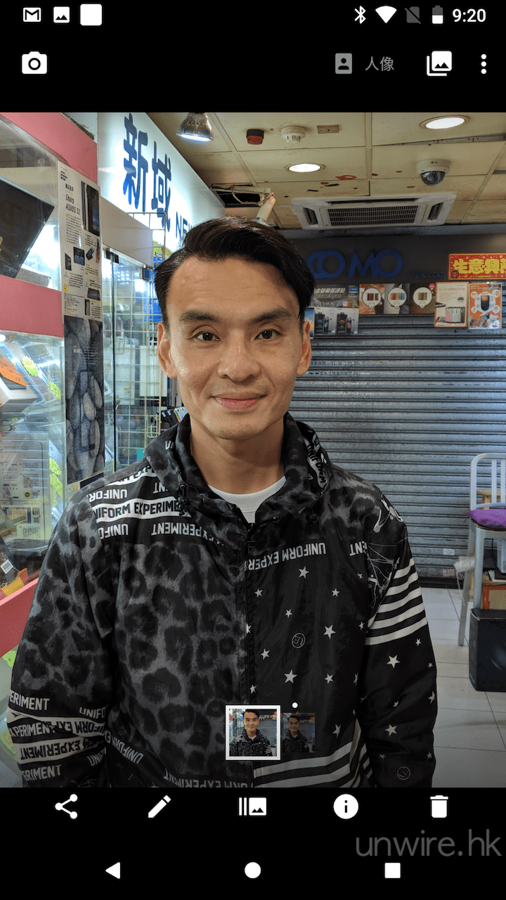 Pixel 2 另一個令大家覺得「神奇」之處,就是它竟然憑藉單鏡頭,就可以拍出其他手機要用雙鏡頭才拍得到的淺景深相片,既然 Google 說得如此神奇,筆者自然要試試。基本上它是用同一個鏡頭,在擷取影像的同時,會將被攝主體與四週環境的距離同時記錄在相片內,再利用內置方程式計算應該採取的景深。結果筆者初步試過,發覺就算在走廊拍攝人像,如果被攝人像與背景對比度不足,仍然會出現「穿崩」情況。而且未知是否在室內拍攝光線不太足夠的緣故,人像與背景接駁位置似乎有「起格」的情況出現,所以整體而言,用 Pixel 2 拍攝淺景深相片,似乎仍不夠用擁有雙鏡頭的手機拍攝出來的效果好,當然與單反 / 無反比較,更是差一大截啦。
