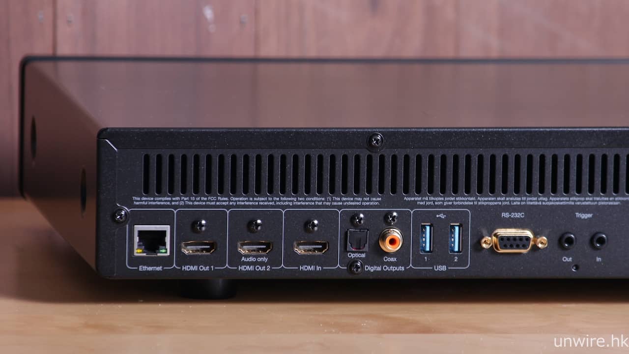 ▲ 機背不設模擬輸出端子,但仍保留 1 入 2 出 HDMI、兩組 USB 3.0 輸入,與及同軸和光纖輸出。