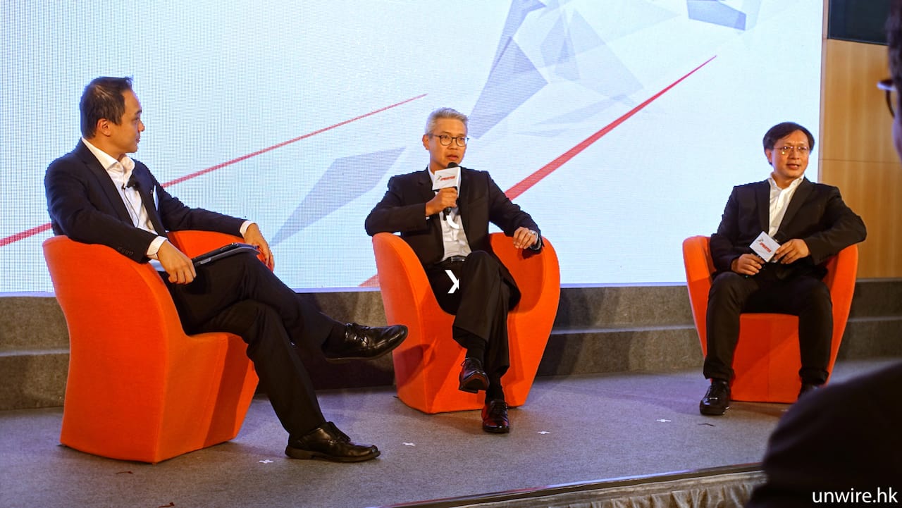 ▲(左起)滙豐香港工商金融主管趙民忠、香港科技園公司行政總裁黃克強、香港天使投資脈絡主席譚偉豪。