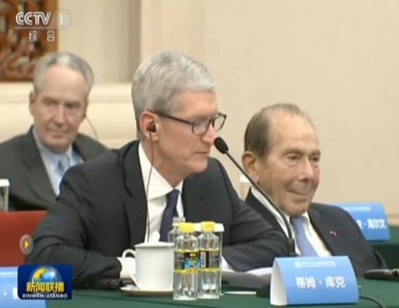 Tim Cook 與 Mark Zuckerberg 這兩位美國商界巨頭,參與北京清華大學商學院舉行的年度顧問大會,在同一場合之下在北京人民大會堂內遇到了中國國家主席習近平。根據中央電視台新聞報道,習近平與商界領袖進行了會面。除上述兩人外,與會者還包括微軟 CEO Satya Nadella,阿里爸爸馬雲、騰訊馬化騰、富士康郭台銘等等。