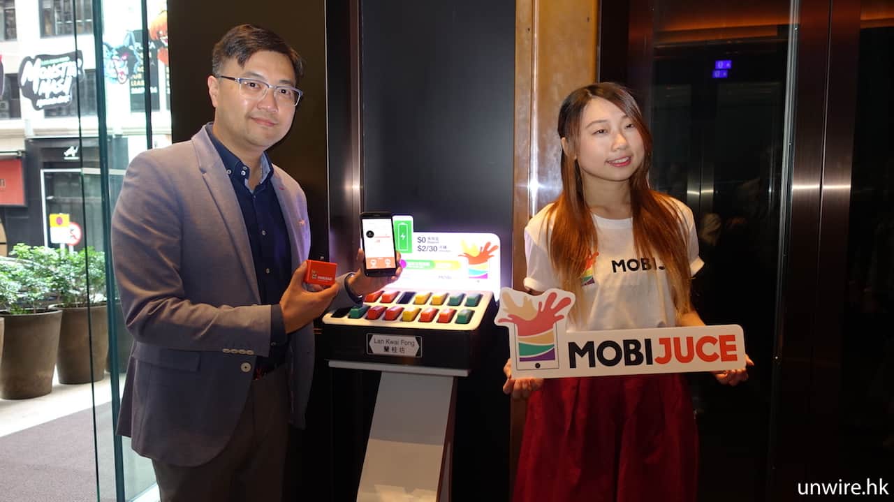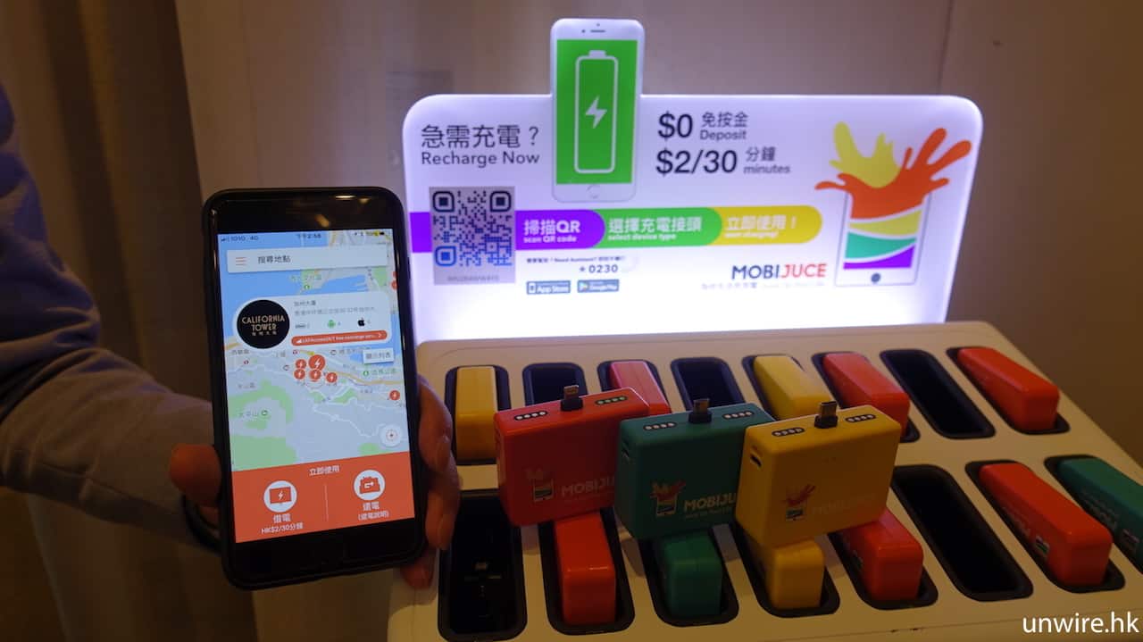 MobiJuce 自助充電器租借系統已經正式推出,首個充電站設於蘭桂芳加州大廈,亦計劃於今年內於全港鬧市,包括銅鑼灣、中環、尖沙咀、旺角等地設置 400 個充電站,明年會增至 1000 個以上。