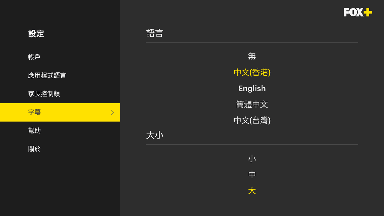 ▲ 字幕可自選為香港正體中文、台灣正體中文、簡體中文及英文(視乎內容是否提供相關字幕語言)。