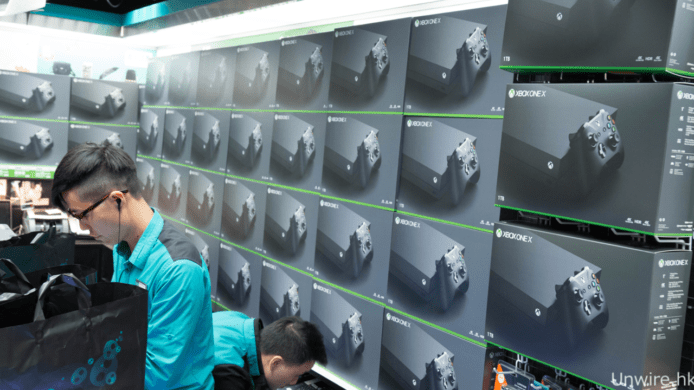 Xbox One X 雖然說是史上最強遊戲主機,但它的價錢也稱得上是遊戲主機界中的新高。在價錢及效能上,有人認為是價錢太貴,亦有人認為是合理價格,不過就在筆者角度來看,只要單看首賣日的情況,便能大概知道 Xbox One X 的反應究竟是如何。在筆者的觀察下,首賣日大概有 100 至 200 人到場排隊選購,就連店鋪內也逼得水泄不通,情況相當熱鬧!不難看見一眾 Xbox 迷的反應是十分熱烈呢!