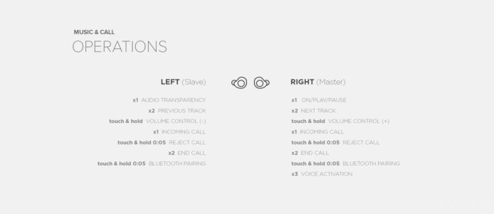 與不少真無線耳機一樣,BeoPlay E8 機身亦不設實體按鍵,所有操控均以點擊及緊按耳機機身的多功能鍵去進行,而同一動作在左右耳機亦代表著不同的功能,例如點擊右耳機一下,就是播放/暫停音樂,而左耳機則是開啟「聲音透通」(Audio Transparency)功能,點擊左/右耳機兩下則是跳播上/下一首歌曲,要增加/減少輸出音量,則是點擊然後緊按右耳機或左耳機表面,熟習之後操控就十分直覺而容易。