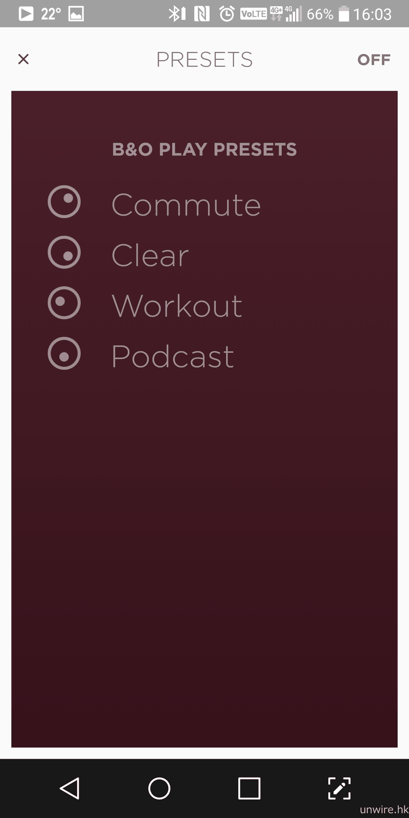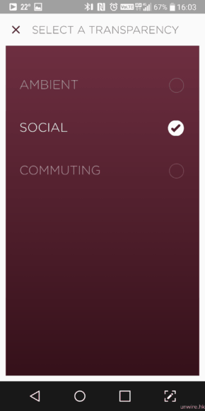 ▲ 而最重要的是,用家透過 Beoplay app 可設定 E8 的聲音透通幅度,共設圖中 3 種模式選擇。