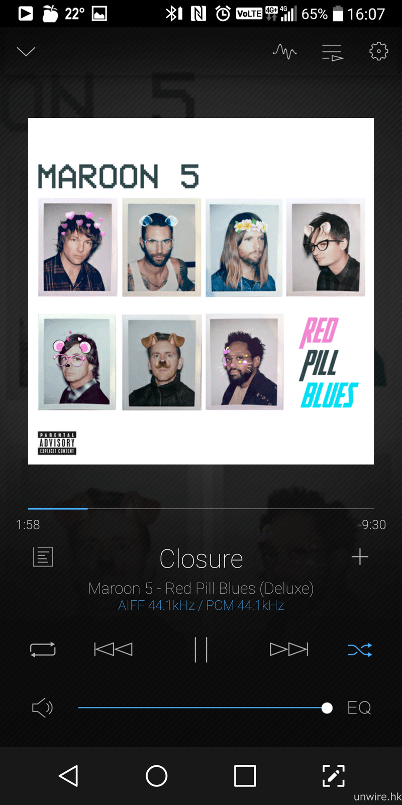 ▲ 試聽歌曲:Maroon 5《Closure》24bit/44.1kHz AIFF 檔。