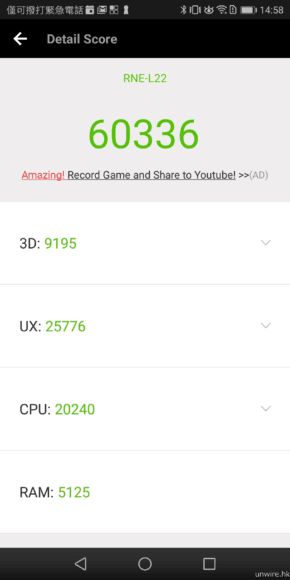 ▲在跑分測試下 HUAWEI NOVA 2i 得分為 60,336,屬中階手機。