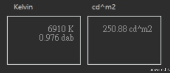 ▲白平衡方面,得分為 6910K,以 6500 K 為標準,熒幕較為冷色。