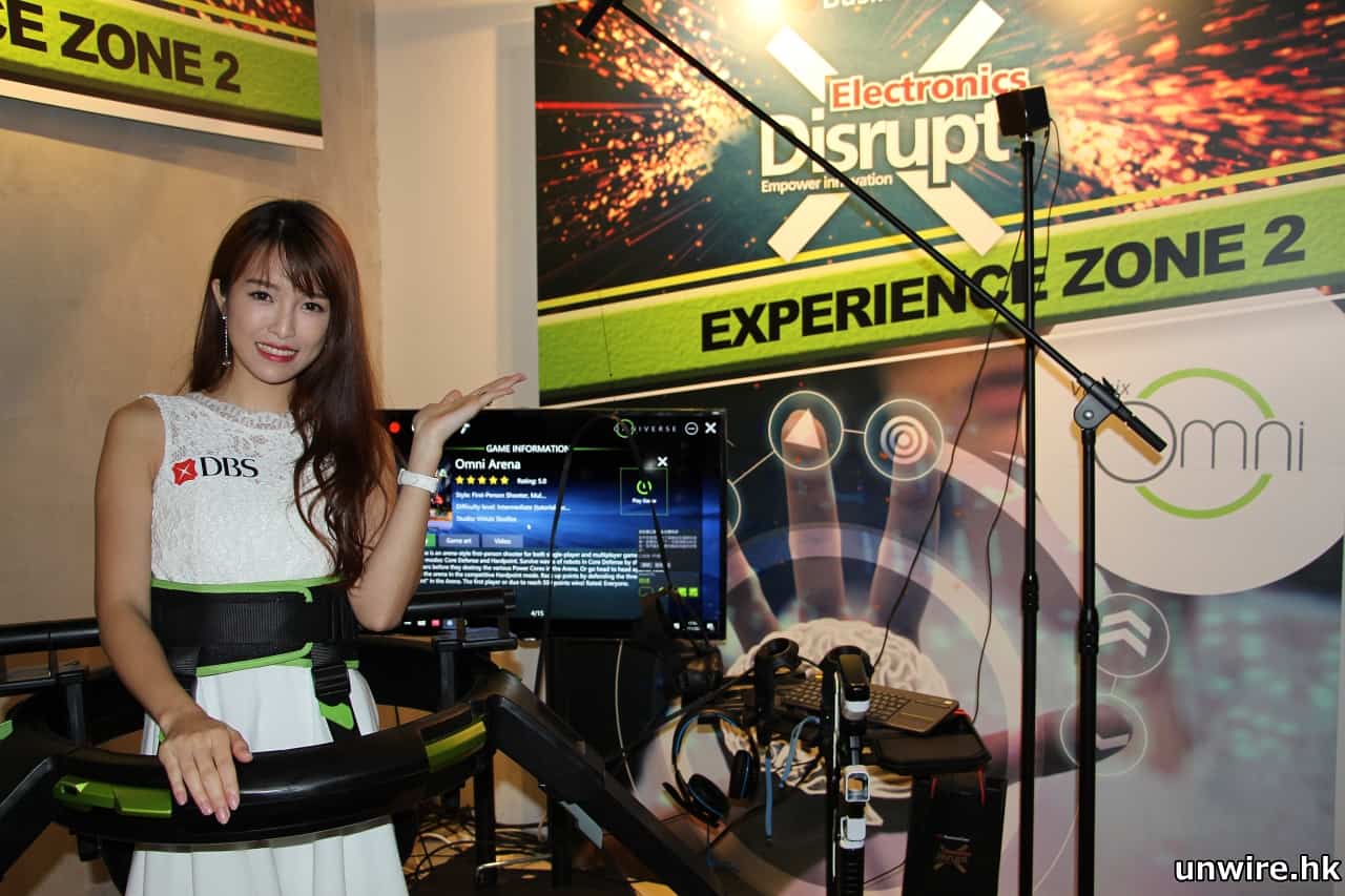 ▲ 主題體驗區中的 Virtuix Omni,可將玩家的運動模式同步反饋到實際遊戲中的 VR 全向跑步機,遊戲時所有步行或跑步動作均能同步反映,提供全新的 VR 體驗,吸引到不少出席人士試玩。
