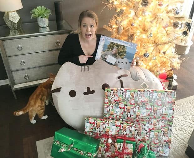 拆開箱子,裡面原來是一個巨形 Pusheen 貓攬枕公仔,更有一張蓋茨同這個公仔合照的相片,證明這件禮物未必由蓋茨親自挑選,也起碼經他之手獲得批准!