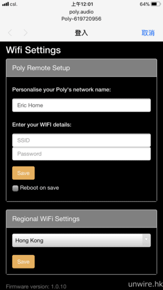 ▲ 在正式使用 Poly 之前,第一步就是連接至 Poly 的 Hot-Spot 並進入其設定選單,手動輸入 Poly 要連接至的 Wi-Fi 網絡,或者隨身智能裝置的共享網絡。