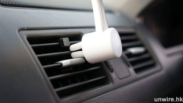 ▲如怕吸實玻璃會阻礙視線,可把手機支架插於出風口,不過會較易損壞及阻礙出風。