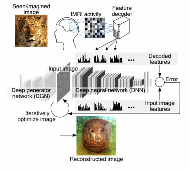 研究團隊分別針對自然景象、人造幾何形狀和字母進行了測試,受試者在觀看圖片或回想圖片時,電腦就會對他們的腦波進行掃瞄。而是透過「深度圖像重建」演算法,電腦會先載入隨機圖片,並根據掃瞄腦波所得到的特徵,逐步改變像素值,藉此生成不同的圖像。