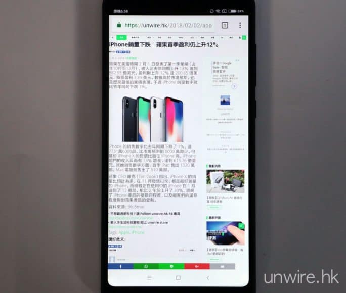 ▲熒幕質素不錯,無論是瀏覽流動版或者桌面版網頁,細字都能清晰銳利顯示出來。