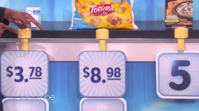 接下來只有兩條題問,主持人話如果兩條答中其中一條,觀眾可以得到 Bill Gates 送出的禮物,呼籲觀眾多點提場。其中一問是 Totino’s PIZZA ROLLS 食品,這包食品看上去就似很貴,而 Bill Gates 一答就答 22 美元,一包零食要這麼貴嗎?觀眾就提水要減一點。最後 Bill Gates 估計這包小食要 8 美元。