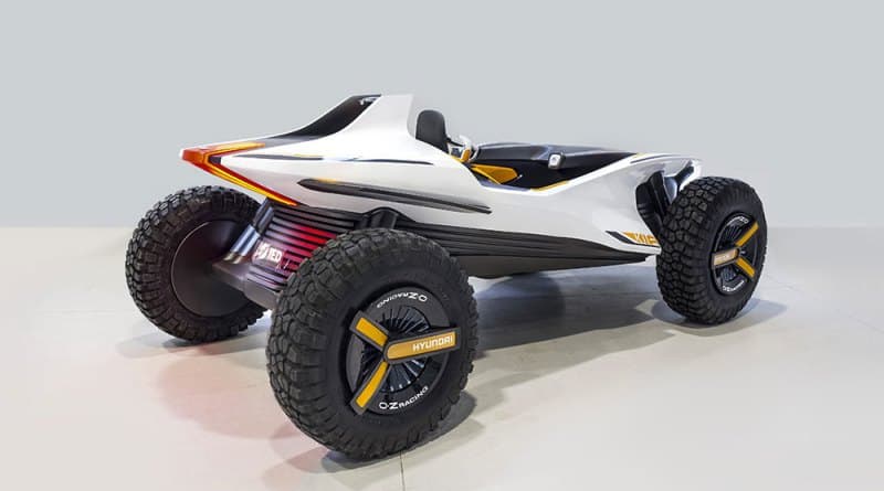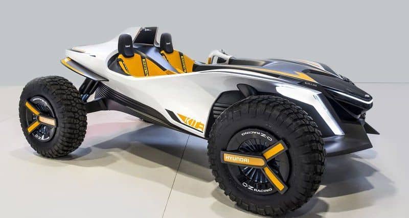 驟眼看來 Hyundai Kite 是一部擁有大型輪胎,適合於沙灘行走的四輪驅動沙灘車,原來還不止於此,Kite 還是以純電動推動,能夠在水上當輕型快艇使用的水陸兩用車。採用雙座位設計,看來是以年輕人或未有孩子的家庭作為定位,Hyundai Kite 的四個電動摩打放在車輪內,而車身另外配備渦輪噴氣發動機以應付在水上航行的需要。