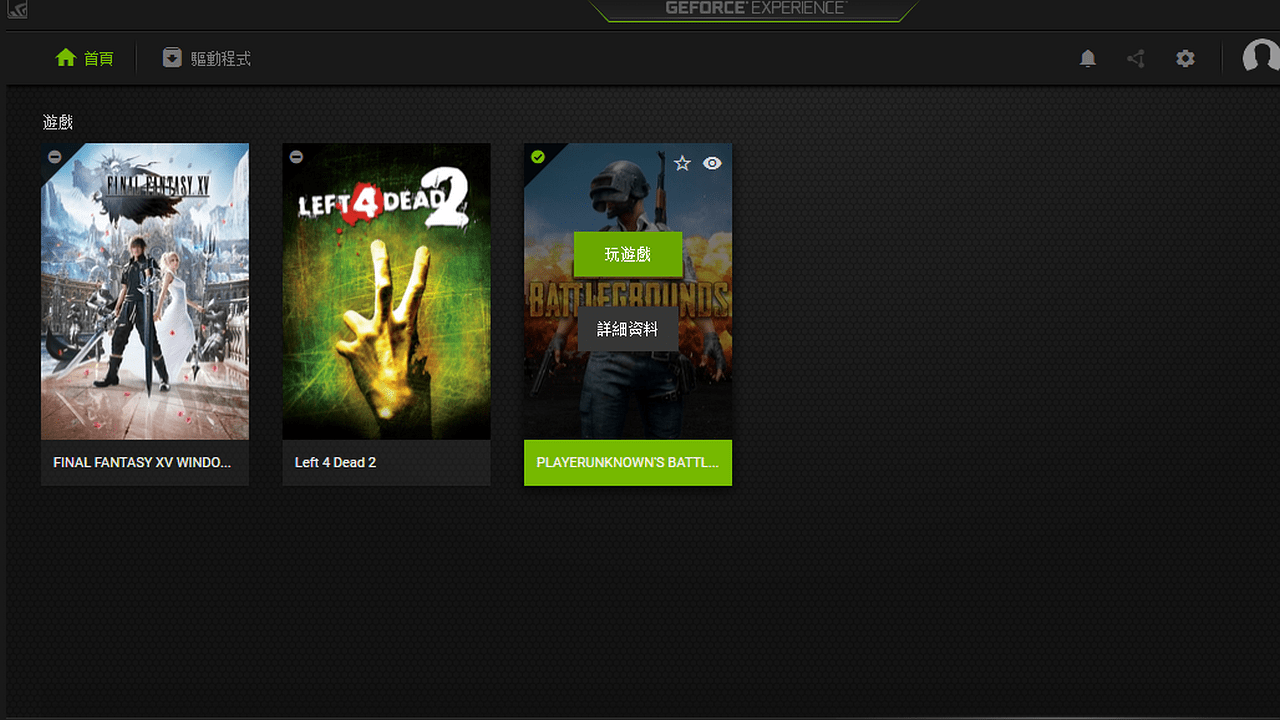 ▲主頁開啟《絕地求生》,「按Alt+F3」開啟「GeForce Experience」界面。