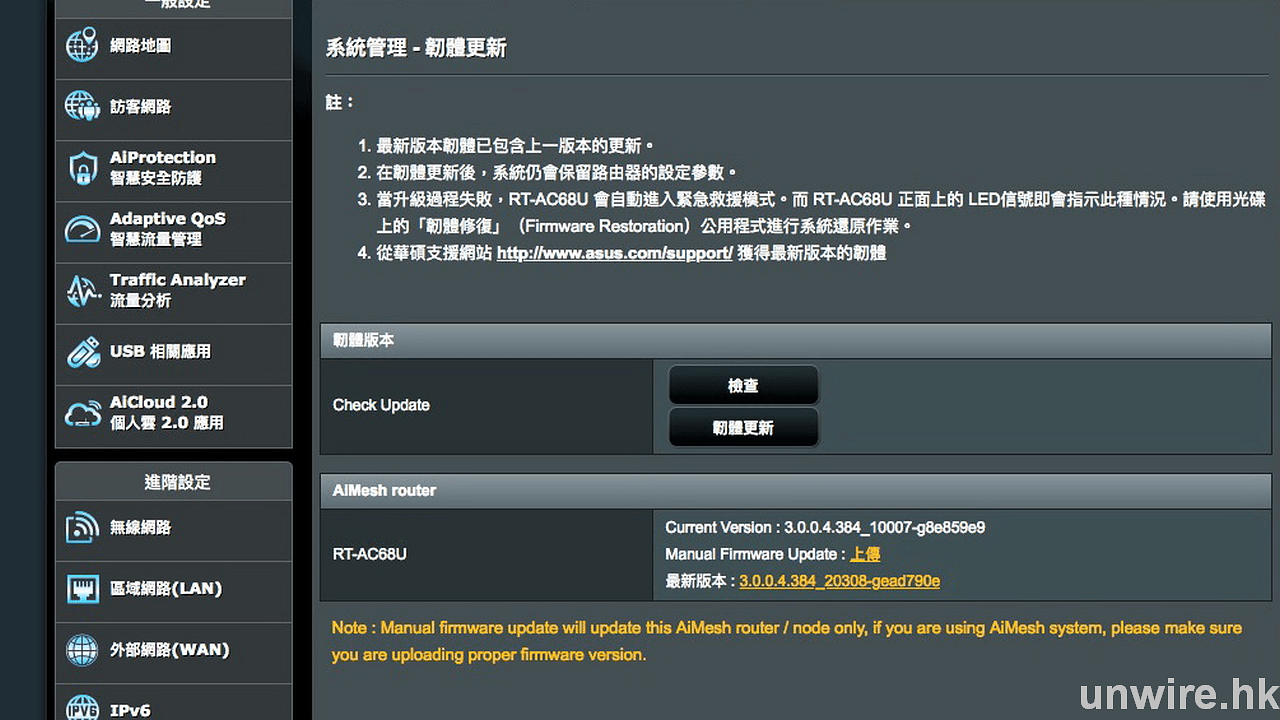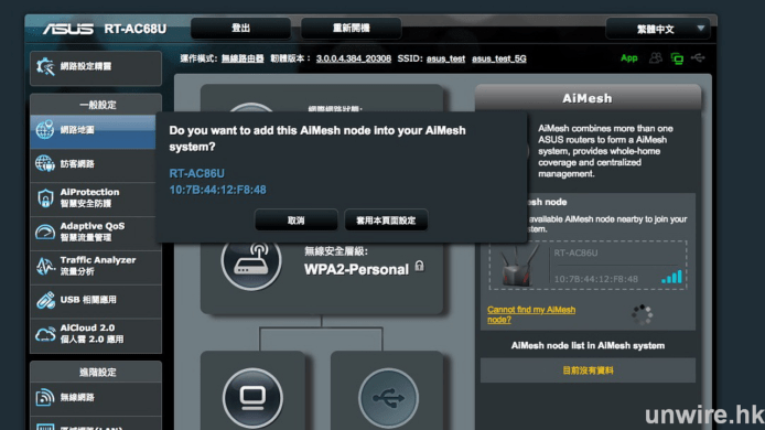 為了有更全面的 Wi-Fi 覆蓋與接收,如果是打算升級路由器,或者都會選擇採用 Mesh 技術的路由器,優點是利用 2 隻或者上的路由器,即可達到全屋覆蓋,更只需要一個 SSID 即可「通屋走」,毋需像以往要手動在不同 SSID 中切換,達到真正的無縫 Wi-Fi。ASUS 近期就為旗下數款路由器加入 AiMesh,只要透過升級 Firmware 即可支援,再買多一隻路由器加上簡單設定即可,升級成本比更換整套路由器低,實際效果如何?就等 unwire 為各位一試!