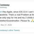 有用戶發現更新到 iOS 13.4 後,裝置無法與仍在使用 iOS 9 的 iPhone 或 iPad 以 FaceTime 聯絡,有 Mac 電腦用戶反映,升級 macOS 10.15.4 後亦遇到類似情況。用戶投訴指他們在升級後,無法以 FaceTime 打通對方使用 iOS 9.3.5 或 iOS 9.3.6 的舊裝置,使用這些裝置的不少是長者。