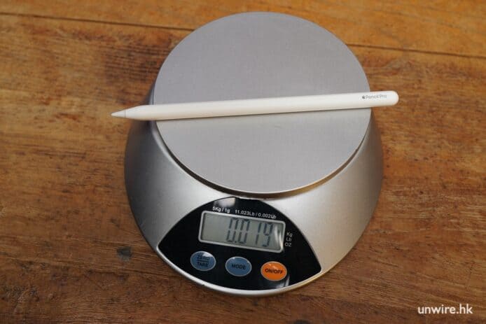 ▲與圖中的 Apple Pencil 相比,重了 1g,相信是在各感應器與震動回饋零件上