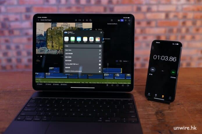 全新 iPad Pro 高效處理能力,最大受益者相信是影片製作者。我們就訪問過 unwire 影片製作同事 E 君。他指 iPad Pro 除了匯出影片的效率高之外,更重要是介面的反應非常快。例如手指觸及游標,在時間軸上四處移動(或 Apple Pencil 懸浮於時間軸上),游標跟著手指移動反應非常快。這點雖然看似微不足道,但如果工作繁重或者趕著要交貨,敏捷的操作與迅速的回應就顯得特別重要。