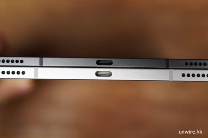 例如對比 Apple Pencil 充電的部份,還有 USB-C 插口,就可看到其分別。特別是後者,你可看到其實這個插口僅剛剛好可以放進去。如你需要把 iPad 放入手提包,輕薄設計更可減少 iPad 的佔用空間,讓你的包包可放更多東西。