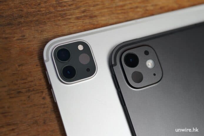 ▲最新 iPad Pro M4(前方黑色主機)少了一個超廣角鏡頭,但閃光燈就加大了