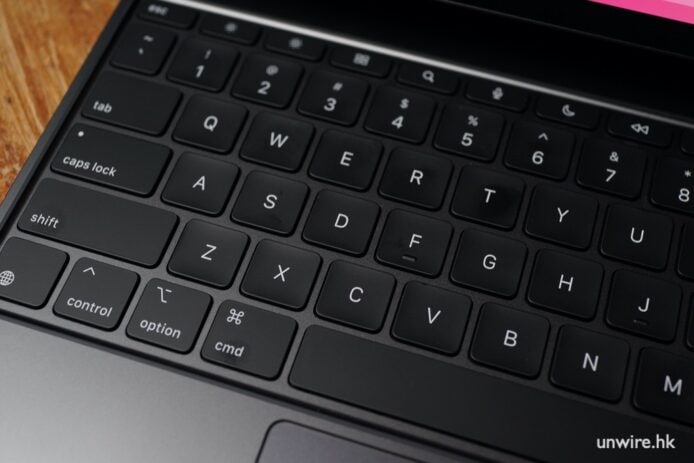 我們認為全新精妙鍵盤打字時字鍵的彈性更強一點,感覺更爽快,做到同 MacBook Air 一樣的觸感。MacBook Air 鍵盤的「ESC」鍵與功能鍵大一點之外,兩者的打字感已接近相同。