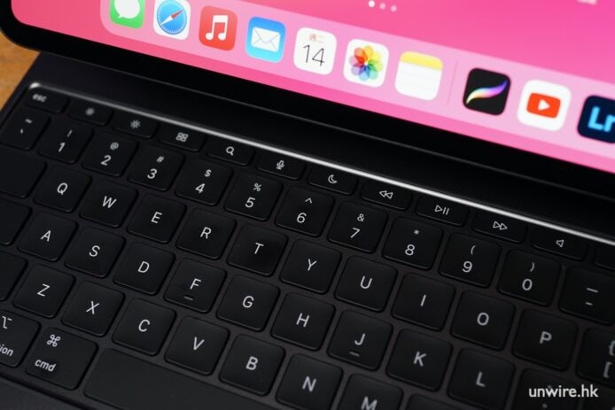 但用家要留意,新舊 iPad Pro 同期推出的精妙鍵盤,是互不共通的。如果你購置全新 M4 版 iPad Pro,過往使用的精妙鍵盤就不能用到,會從鍵盤磁貼位跌下來,相反亦然。你需要購置最新款的精妙鍵盤配合使用。