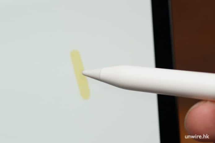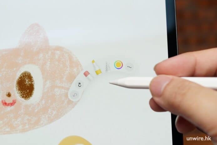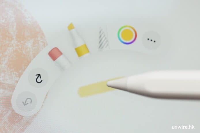 ▲你可在圖中左下角的筆觸上,輕微看到畫面顯示 Apple Pencil Pro 的虛擬倒影