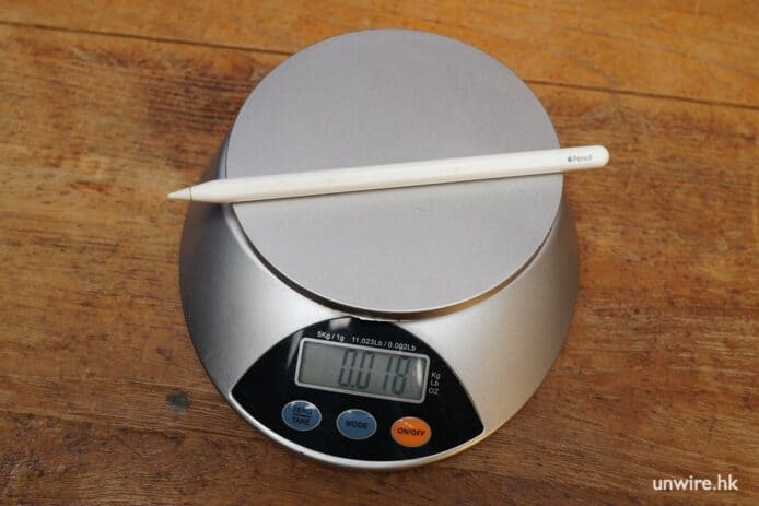 ▲與圖中的 Apple Pencil 相比,重了 1g,相信是在各感應器與震動回饋零件上