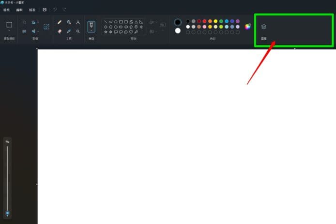 要試玩 Microsoft Cocreator,首先你需要一部運行 Windows 11 的電腦。開啟小畫家後,看看圖層旁邊的位置是否有「Cocreator」按鍵(綠框示)。由於目前 Microsoft 暫未對香港開放這項功能,因此看不見「Cocreator」按鍵是正常的。