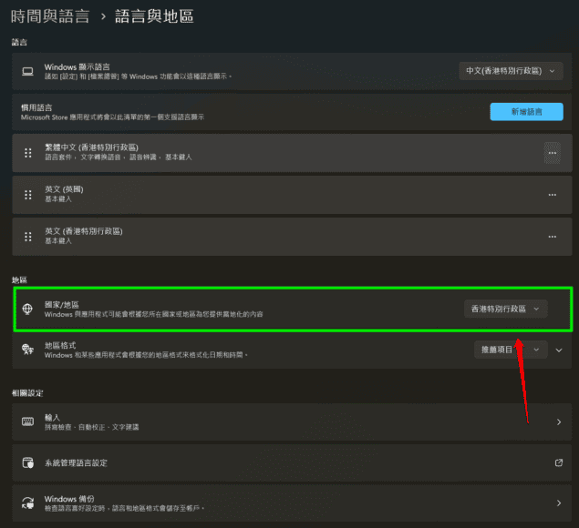 ▲選擇「語言與地區」(綠框示)