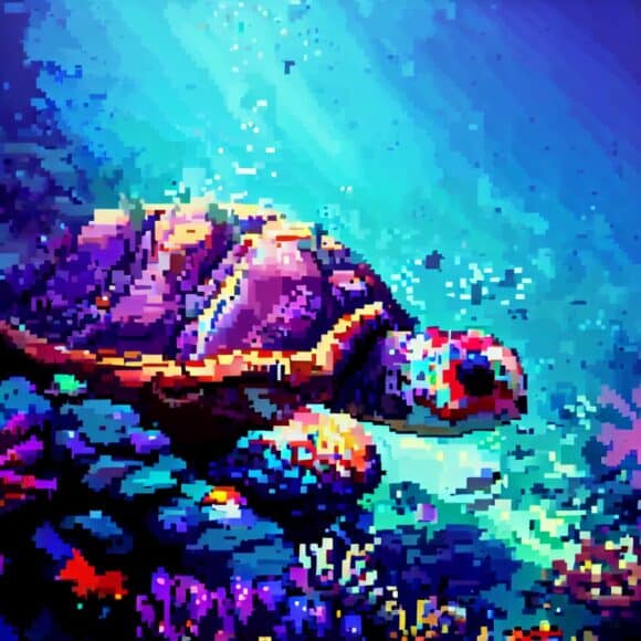 | 像素藝術 | 海龜在珊瑚礁穿梭 |