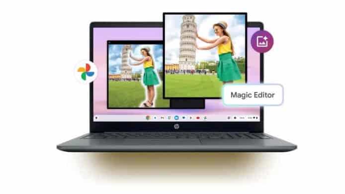 另一個引人注目的更新是 Google Photos 中的 Magic Editor 現已登陸 Chromebook Plus。功能原本在 Google Pixel 上推出,現已擴展到手提電腦,成為 Chromebook Plus 的專有功能。Magic Editor 允許使用者移動或調整照片中物件的大小,並自動重新生成背景。Google 也將其 Gemini 聊天機器人整合到 Chromebook Plus 中。除了預載 app 外,Gemini 也會被放在啟動器上顯眼的位置,方便使用者快速存取和使用。