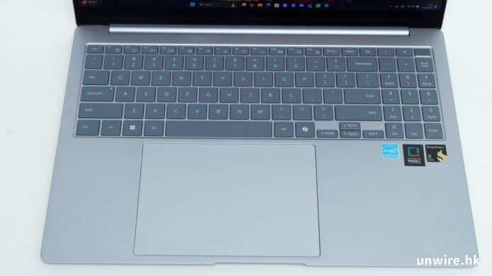至於操控方面,Book4 Edge 熒幕本身支援觸控功能,雖然未能像平板般使用,但仍可以手指繪圖記事。此外,它亦內建含有數字鍵盤的全尺寸鍵盤,佈局使用十分順手之餘,按鍵按打面積亦足夠,不過鍵程似乎較淺,長時間打字不算十分舒服,只適合作短時間處理文書工作之用。不過它的觸控板面積就真的十分大,甚至比不少大熒幕手機的面積也要大,當然這個設計令大家以多手指操控系統也十分方便,但筆者使用時就發現如此大的觸控板,在打字時有時會出現手腕誤觸情況導致操控不算有好的體驗(雖然並非經常如此……),似乎下一代 Samsung 要在操控體驗及觸控板大細之間作出更佳的平衡。