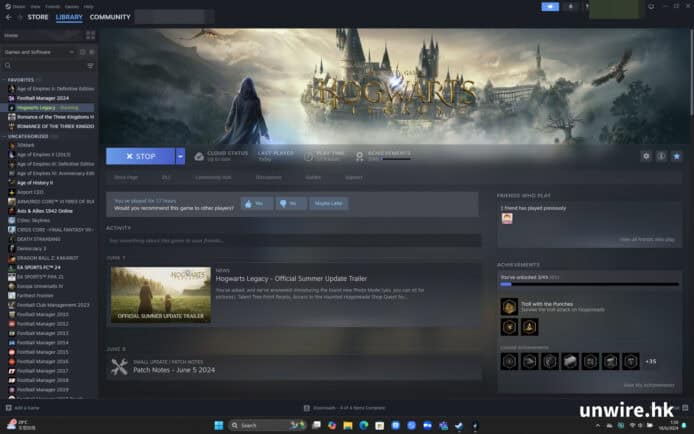 ▲但如果要玩一些對圖像處理要求較高的遊戲,例如 FC24 及 Hogwarts Legacy,就出現未能執行或彈 APP 的情況,筆者曾有一次入到 Hogwarts Legacy 的主畫面,但 lag 的情況十分嚴重。由此可見 Book4 Edge 用來打機確實是不夠力的,而且支援度肯定不及 x64 架構的筆電,所以在這方面大家就不要期望太多了。