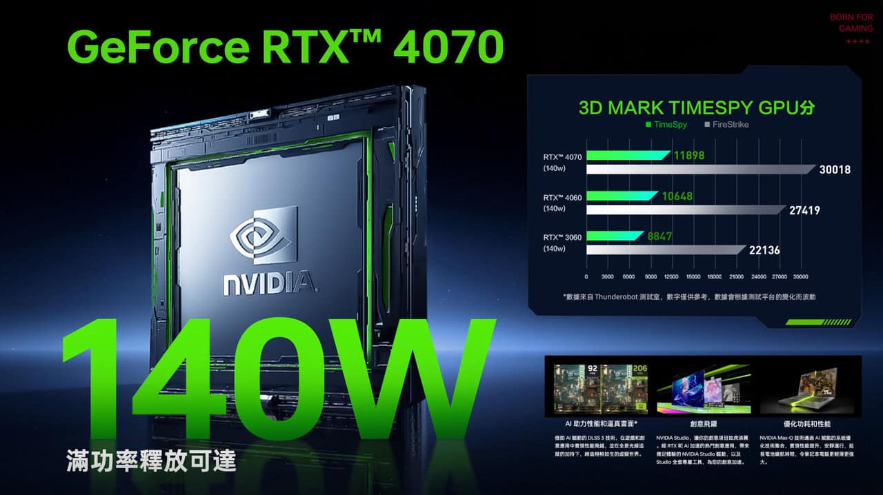 Thunderobot 推出全新「獵刃 16 2024 」電競筆電,搭載最新 Intel Core i9-14900HX 處理器,NVIDIA GeForce RTX 4070 筆電顯示卡,16GB DDR5 RAM,1TB PCIe M.2 SSD 配置,採用 16 吋,2.5K 2560×1600 解像度,240Hz 極速刷新率的 IPS 顯示面板,配備全新及強勁的三風扇五熱管散熱技術,帶來媲美桌面電腦的極速遊戲體驗。