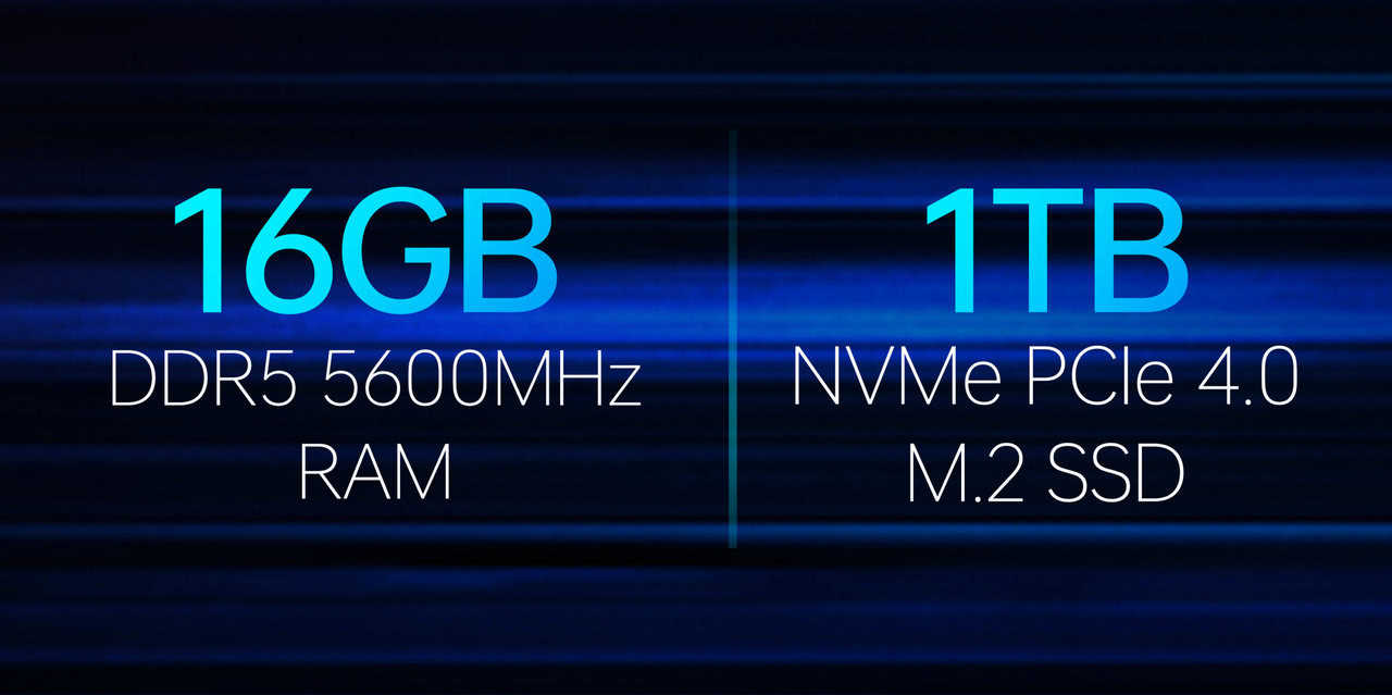 Thunderobot 獵刃 16 2024 採用 16GB DDR5 5600MHz 記憶體及 1TB NVMe PCIe 4.0 M.2 固態硬碟,輕鬆滿足遊戲及日常辦公需求。同時間都提供 2 條合共最高支援 64GB DDR5 5600MHz 的槽位及 2 條支援 M.2 固態硬碟的槽位,方便自由更換及升級儲存容量。