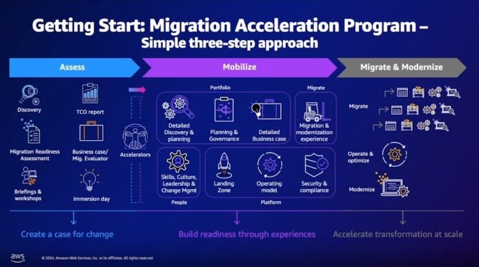 AWS 亦因此設計出 Migration Acceleration Program,利用不同方法和工具,協助企業以三個步驟,即評估 (Assess)、起動 (Mobilize)、遷移 (Migrate) ,按部就班準備遷移所需。