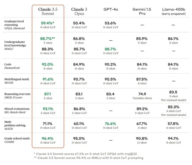 Anthropic 表示,Claude 3.5 Sonnet,在各種任務上都能與 OpenAI 的 GPT-4o 和 Google 的 Gemini 1.5 Pro 等競爭對手相媲美甚至超越。Claude 3.5 Sonnet 雖然被定位為 Claude 模型的中階版本,介乎 Haiku 和 Opus 之間,但今次 Claude 3.5 Sonnet 的效能已經超越 Claude 3 Opus。